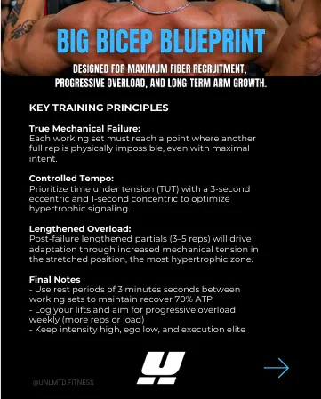 Targeted training for arms that turn heads. The Big Bicep Blueprint is a focused program that breaks down the best exercises, sets, and techniques to build fuller, stronger, and more defined biceps.